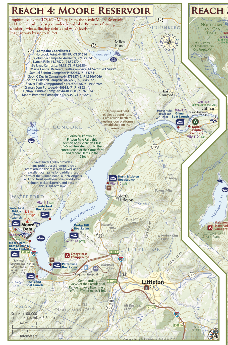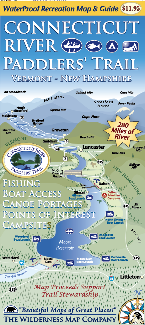 This is the most complete and updated river-ready resource for your river adventures along the northern river. This map covers the river from its headwaters 280 miles south to the Massachusetts border, and includes all access points, campsites, portage trails, and information on the area natural and cultural history.Developed by the NorthWoods Stewardship Center, the Vermont River Conservancy, and the Vermont Department of Forest Parks and Recreation in partnership with the award winning Wilderness Map Company, this beautiful and functional map is fit for both your kayak cockpit AND your coffee table.