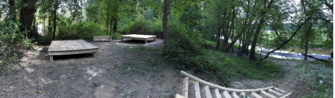The Appalachian Mountain Club constructed this campsite along the Podunk River tributary in 2025. Called the Hartford Campsite, , it includes 16’ stair way, two platforms, a bench, signage and a moldering privy complete the site.